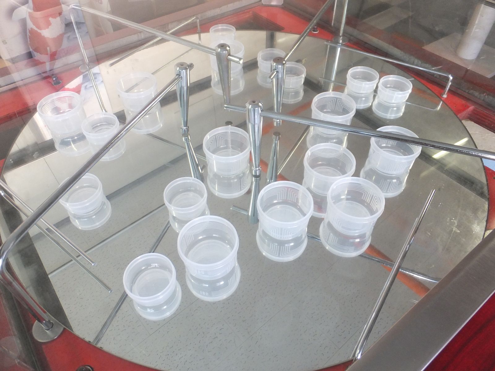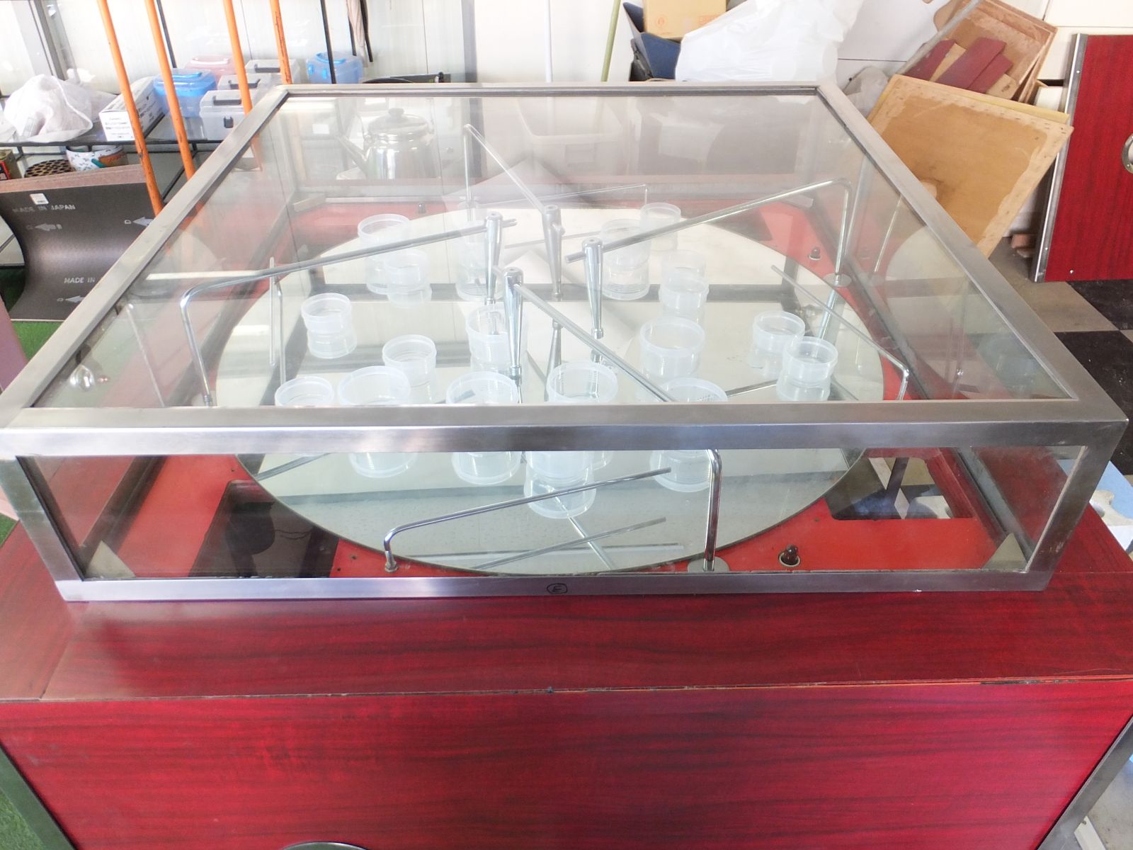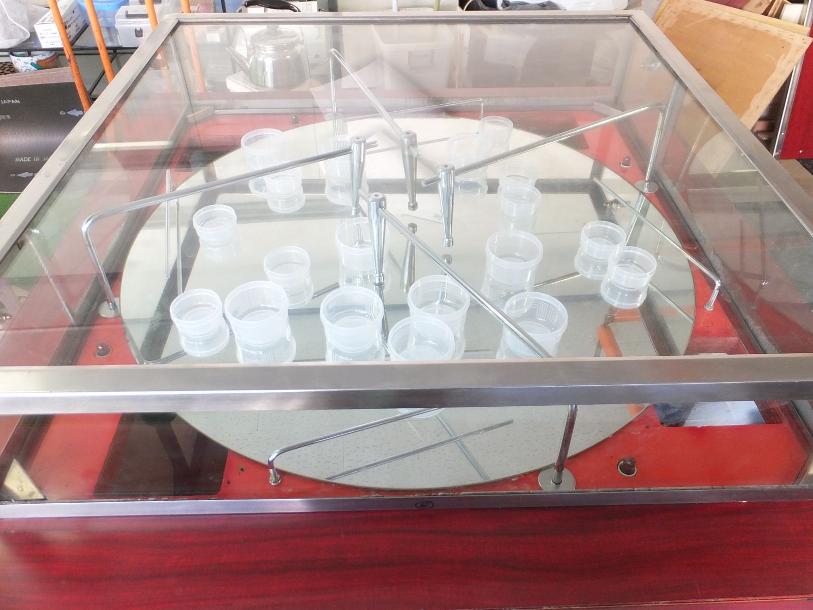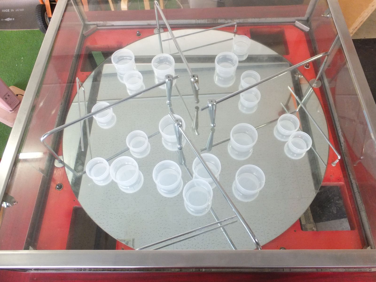 3.アームが回転盤の淵(商品出口)まで来たらアームは自動的に中央に戻ります。